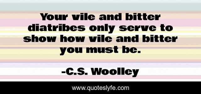 "C.S. Woolley Quotes." Quoteslyfe.com, 2025. Fri. 05 Dec. 2025. <https://www.quoteslyfe.com/quote/Your-vile-and-bitter-diatribes-only-serve-51786>.