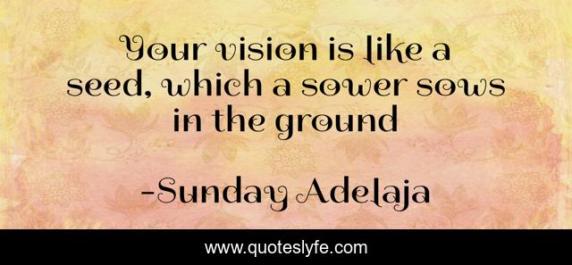 This page presents the quote "Your vision is like a seed, which a sower sows in the ground". Author of this quote is Sunday Adelaja. This quote is about life, calling, purpose, goals, fulfillment,.