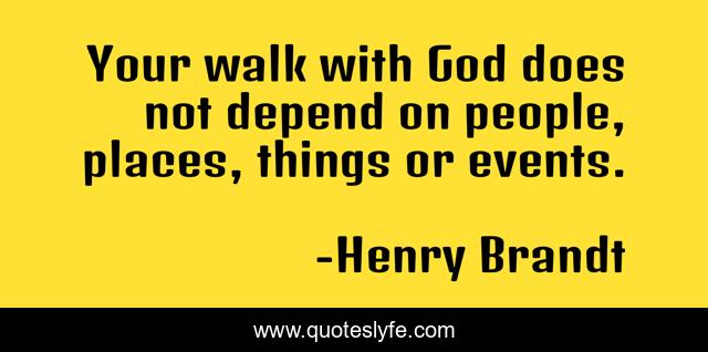 This page presents the quote "Your walk with God does not depend on people, places, things or events.". Author of this quote is Henry Brandt. .
