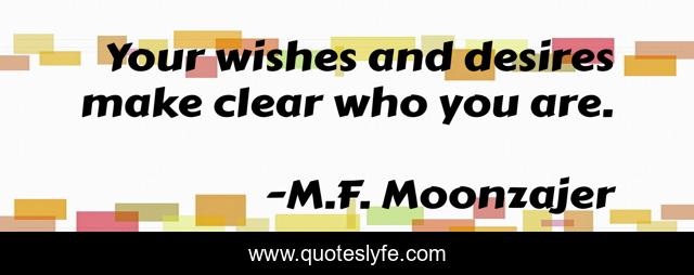 This page presents the quote "Your wishes and desires make clear who you are.". Author of this quote is M.F. Moonzajer. This quote is about clear, wishes, desires, personality,.