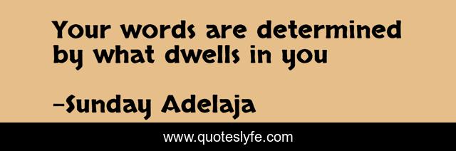 This page presents the quote "Your words are determined by what dwells in you". Author of this quote is Sunday Adelaja. This quote is about dwells, determined, words,.