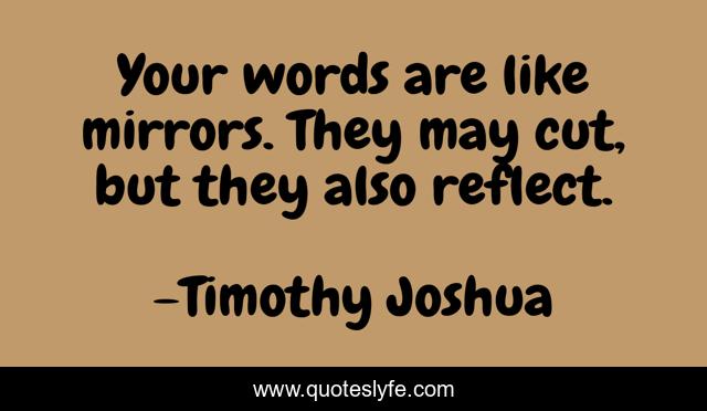 This page presents the quote "Your words are like mirrors. They may cut, but they also reflect.". Author of this quote is Timothy Joshua. This quote is about relationships, love, words, quote, writing, inspirational, enthusiasm, friendship, affection,.
