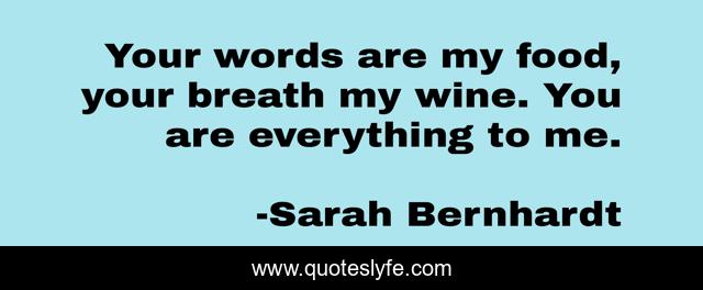 This page presents the quote "Your words are my food, your breath my wine. You are everything to me.". Author of this quote is Sarah Bernhardt. This quote is about food, words, wine,.