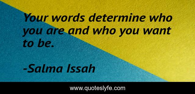 "Salma Issah Quotes." Quoteslyfe.com, 2025. Sun. 07 Dec. 2025. <https://www.quoteslyfe.com/quote/Your-words-determine-who-you-are-and-110152>.