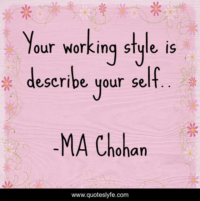 "MA Chohan Quotes." Quoteslyfe.com, 2025. Fri. 05 Dec. 2025. <https://www.quoteslyfe.com/quote/Your-working-style-is-describe-your-self-235599>.