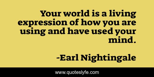 This page presents the quote "Your world is a living expression of how you are using and have used your mind.". Author of this quote is Earl Nightingale. This quote is about enthusiasm, inspirational,.