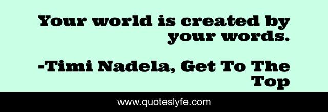 "Timi Nadela, Get To The Top Quotes." Quoteslyfe.com, 2025. Sun. 07 Dec. 2025. <https://www.quoteslyfe.com/quote/Your-world-is-created-by-your-words-252131>.