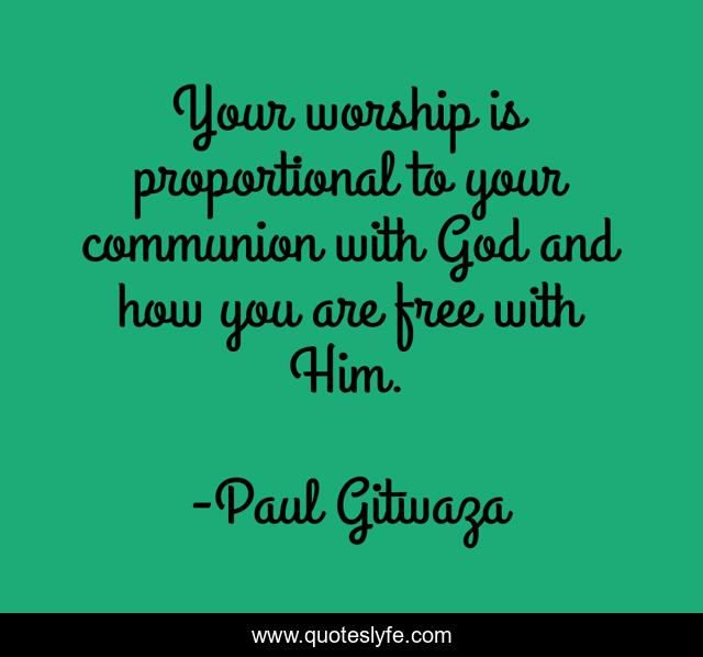This page presents the quote "Your worship is proportional to your communion with God and how you are free with Him.". Author of this quote is Paul Gitwaza. This quote is about freedom, communion, deliverance, god, worship, inspiration,.