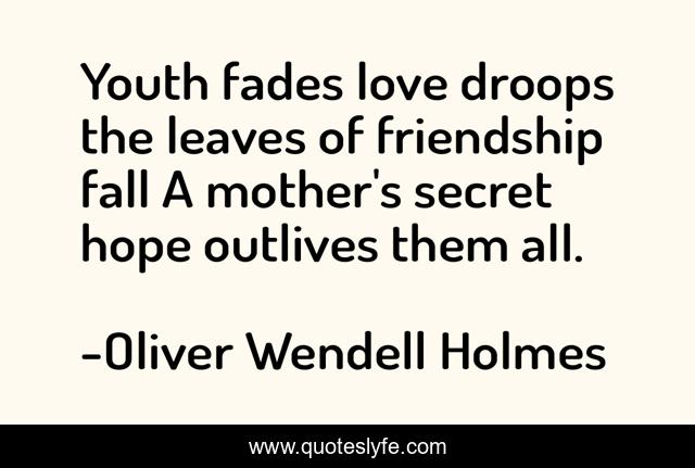 "Oliver Wendell Holmes Quotes." Quoteslyfe.com, 2025. Sun. 07 Dec. 2025. <https://www.quoteslyfe.com/quote/Youth-fades-love-droops-the-leaves-of-268607>.
