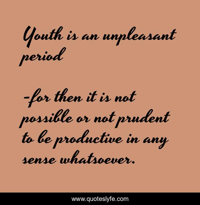 "for then it is not possible or not prudent to be productive in any sense whatsoever. Quotes." Quoteslyfe.com, 2025. Tue. 09 Dec. 2025. <https://www.quoteslyfe.com/quote/Youth-is-an-unpleasant-period-184216>.