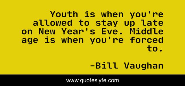 This page presents the quote "Youth is when you're allowed to stay up late on New Year's Eve. Middle age is when you're forced to.". Author of this quote is Bill Vaughan. This quote is about youth, late,.