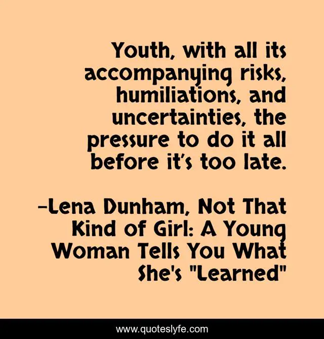 "Lena Dunham, Not That Kind of Girl: A Young Woman Tells You What She's "Learned" Quotes." Quoteslyfe.com, 2025. Sat. 06 Dec. 2025. <https://www.quoteslyfe.com/quote/Youth-with-all-its-accompanying-risks-humiliations-184374>.