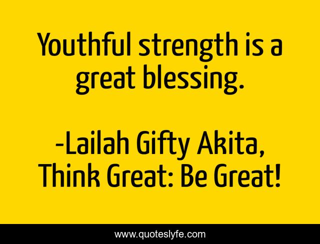 "Lailah Gifty Akita, Think Great: Be Great! Quotes." Quoteslyfe.com, 2025. Tue. 09 Dec. 2025. <https://www.quoteslyfe.com/quote/Youthful-strength-is-a-great-blessing-85507>.