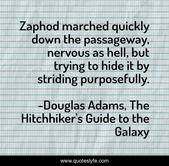 "Douglas Adams, The Hitchhiker's Guide to the Galaxy Quotes." Quoteslyfe.com, 2025. Fri. 05 Dec. 2025. <https://www.quoteslyfe.com/quote/Zaphod-marched-quickly-down-the-passageway-nervous-199338>.