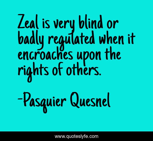 This page presents the quote "Zeal is very blind or badly regulated when it encroaches upon the rights of others.". Author of this quote is Pasquier Quesnel. .