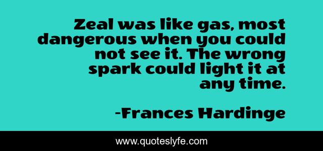 "Frances Hardinge Quotes." Quoteslyfe.com, 2025. Sun. 07 Dec. 2025. <https://www.quoteslyfe.com/quote/Zeal-was-like-gas-most-dangerous-when-26622>.