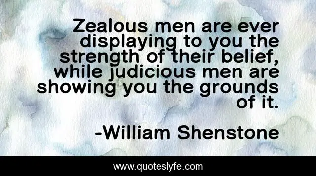 This page presents the quote "Zealous men are ever displaying to you the strength of their belief, while judicious men are showing you the grounds of it.". Author of this quote is William Shenstone. This quote is about men, belief,.