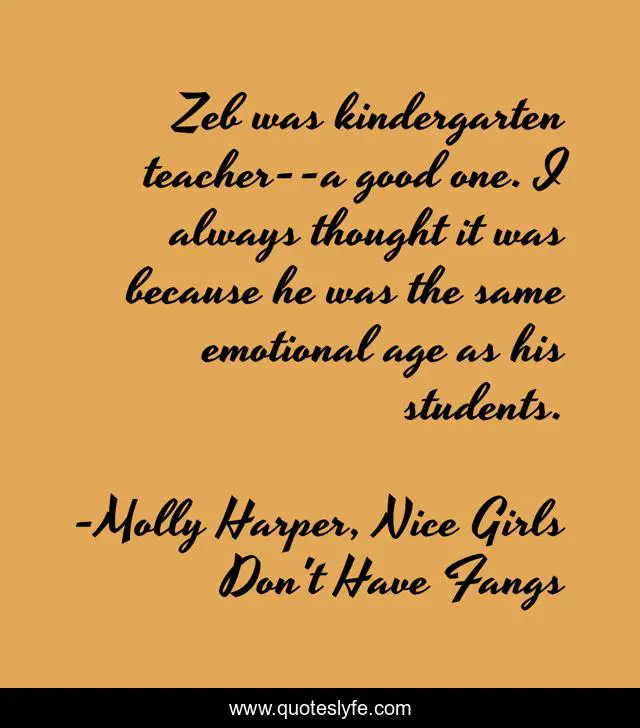 "Molly Harper, Nice Girls Don't Have Fangs Quotes." Quoteslyfe.com, 2025. Tue. 09 Dec. 2025. <https://www.quoteslyfe.com/quote/Zeb-was-kindergarten-teacher-a-good-one-40905>.