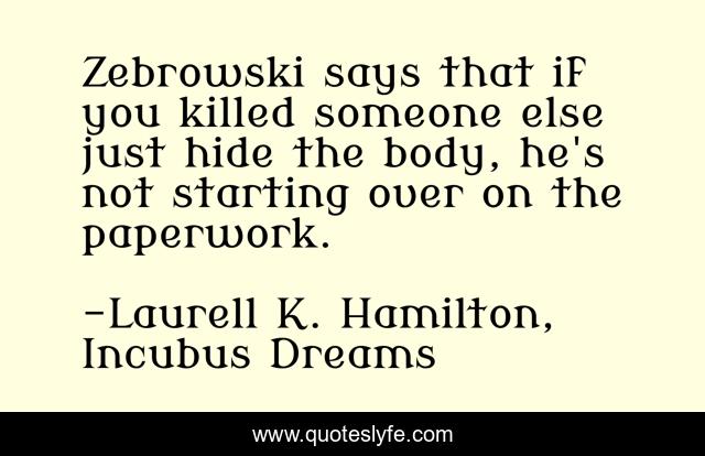 "Laurell K. Hamilton, Incubus Dreams Quotes." Quoteslyfe.com, 2025. Sun. 07 Dec. 2025. <https://www.quoteslyfe.com/quote/Zebrowski-says-that-if-you-killed-someone-40332>.