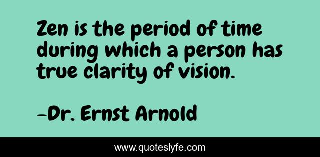 This page presents the quote "Zen is the period of time during which a person has true clarity of vision.". Author of this quote is Dr. Ernst Arnold. This quote is about tao, visionary, zen, buddhism, buddha, vision, taoism, awareness,.