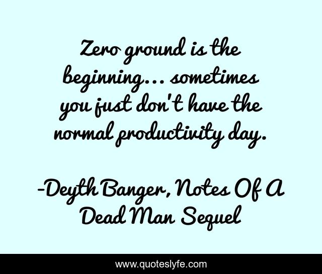 This page presents the quote "Zero ground is the beginning... sometimes you just don't have the normal productivity day.". Author of this quote is Deyth Banger, Notes Of A Dead Man Sequel. This quote is about zero, day, ground,.