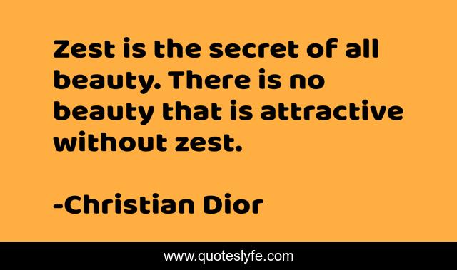 This page presents the quote "Zest is the secret of all beauty. There is no beauty that is attractive without zest.". Author of this quote is Christian Dior. .