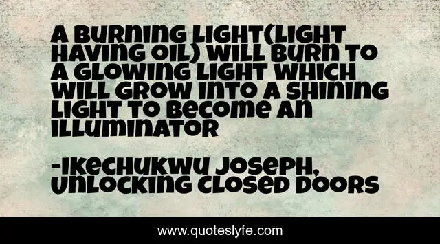 "Ikechukwu Joseph, Unlocking Closed Doors Quotes." Quoteslyfe.com, 2025. Tue. 09 Dec. 2025. <https://www.quoteslyfe.com/quote/a-burning-light-light-having-oil-will-249417>.