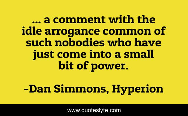 This page presents the quote "... a comment with the idle arrogance common of such nobodies who have just come into a small bit of power.". Author of this quote is Dan Simmons, Hyperion. .