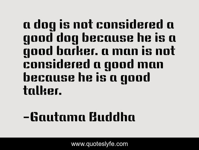 This page presents the quote "a dog is not considered a good dog because he is a good barker. a man is not considered a good man because he is a good talker.". Author of this quote is Gautama Buddha. This quote is about enthusiasm, inspirational,.