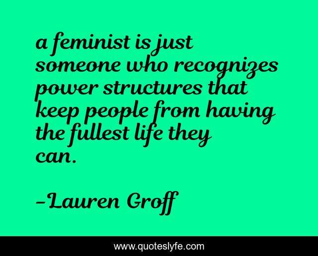 This page presents the quote "a feminist is just someone who recognizes power structures that keep people from having the fullest life they can.". Author of this quote is Lauren Groff. This quote is about feminist, gender-roles, women-s-rights, feminism, women,.