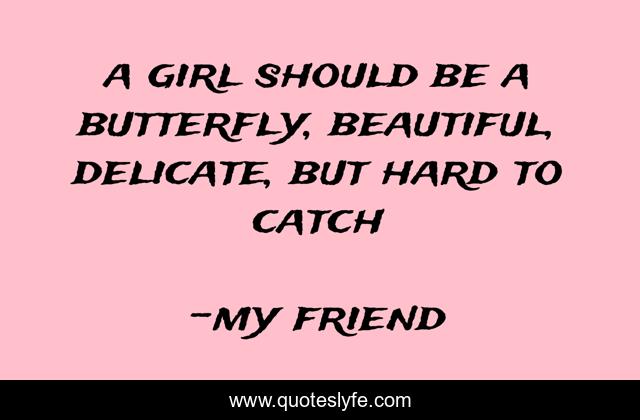 This page presents the quote "a girl should be a butterfly, beautiful, delicate, but hard to catch". Author of this quote is my friend. .