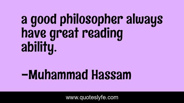 This page presents the quote "a good philosopher always have great reading ability.". Author of this quote is Muhammad Hassam. .