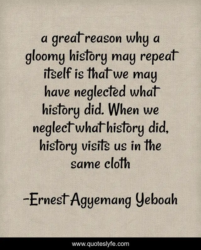 a great reason why a gloomy history may repeat itself is that we may have neglected what history did. When we neglect what history did, history visits us in the same cloth