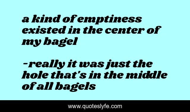 This page presents the quote "a kind of emptiness existed in the center of my bagel". Author of this quote is really it was just the hole that's in the middle of all bagels. .