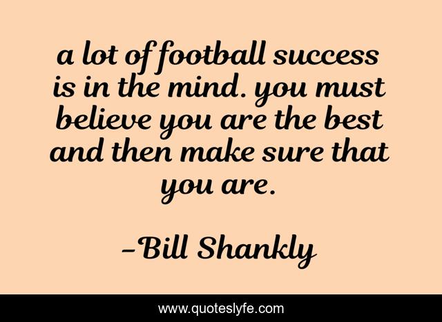 This page presents the quote "a lot of football success is in the mind. you must believe you are the best and then make sure that you are.". Author of this quote is Bill Shankly. .