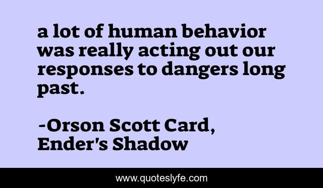 This page presents the quote "a lot of human behavior was really acting out our responses to dangers long past.". Author of this quote is Orson Scott Card, Ender's Shadow. This quote is about human-nature, behavior, danger,.