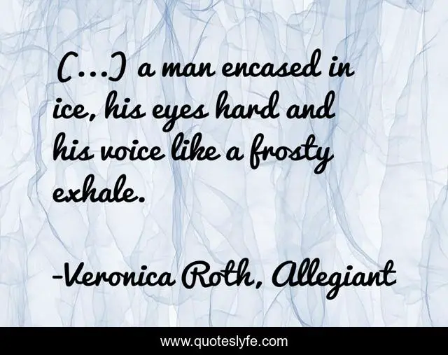 This page presents the quote "(...) a man encased in ice, his eyes hard and his voice like a frosty exhale.". Author of this quote is Veronica Roth, Allegiant. This quote is about people, cold-person, emotions, ice, cold, man, personality,.