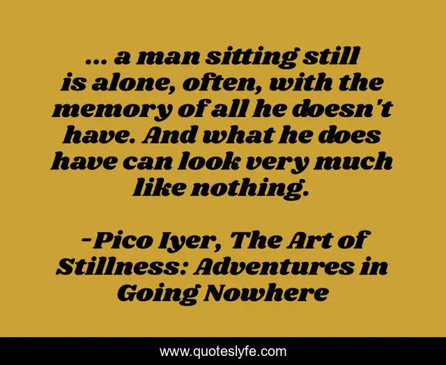 "Pico Iyer, The Art of Stillness: Adventures in Going Nowhere Quotes." Quoteslyfe.com, 2025. Mon. 08 Dec. 2025. <https://www.quoteslyfe.com/quote/a-man-sitting-still-is-alone-often-117828>.