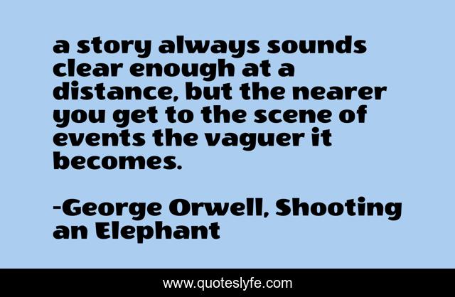 This page presents the quote "a story always sounds clear enough at a distance, but the nearer you get to the scene of events the vaguer it becomes.". Author of this quote is George Orwell, Shooting an Elephant. This quote is about vagueness, communication, story, clarity, confusion,.