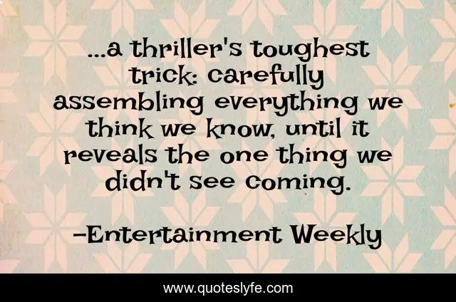This page presents the quote "...a thriller's toughest trick: carefully assembling everything we think we know, until it reveals the one thing we didn't see coming.". Author of this quote is Entertainment Weekly. This quote is about writing-process, thriller,.