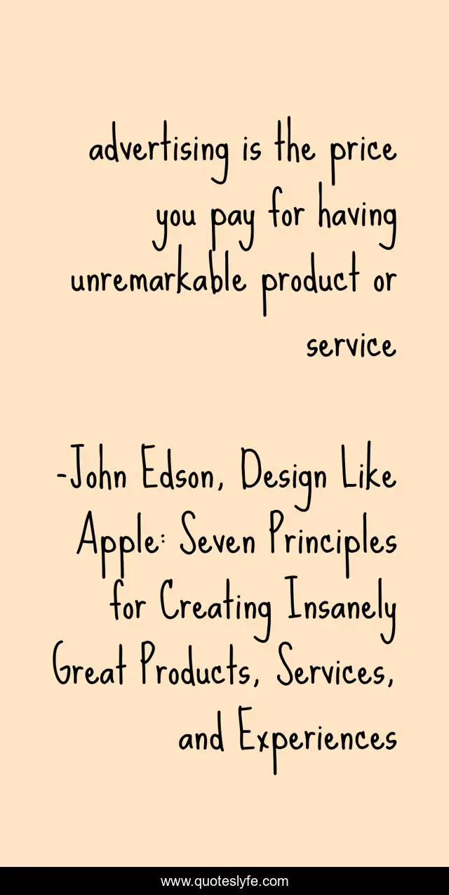 "John Edson, Design Like Apple: Seven Principles for Creating Insanely Great Products, Services, and Experiences Quotes." Quoteslyfe.com, 2025. Sat. 06 Dec. 2025. <https://www.quoteslyfe.com/quote/advertising-is-the-price-you-pay-for-237506>.