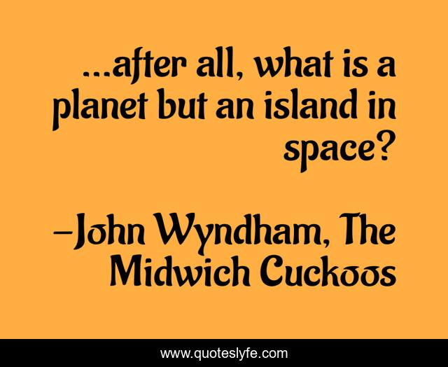 This page presents the quote "…after all, what is a planet but an island in space?". Author of this quote is John Wyndham, The Midwich Cuckoos. .
