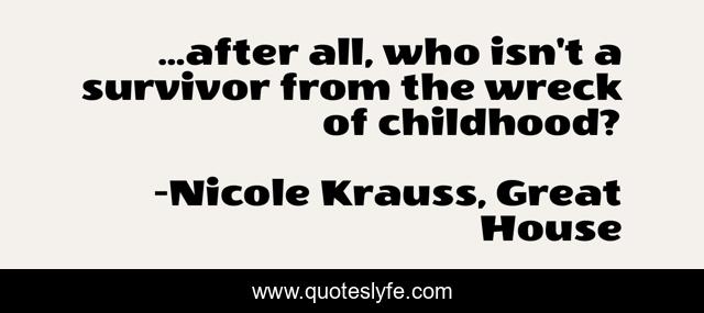 This page presents the quote "...after all, who isn't a survivor from the wreck of childhood?". Author of this quote is Nicole Krauss, Great House. .