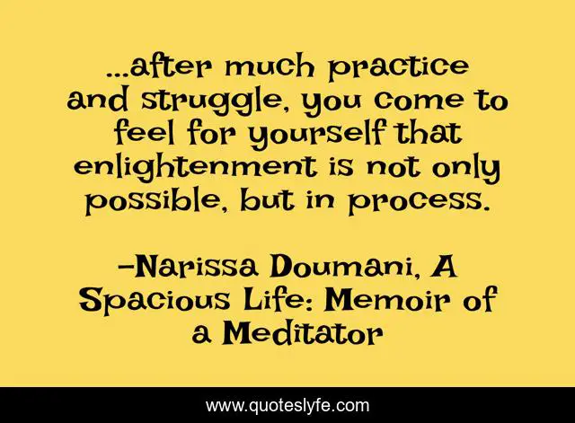 This page presents the quote "...after much practice and struggle, you come to feel for yourself that enlightenment is not only possible, but in process.". Author of this quote is Narissa Doumani, A Spacious Life: Memoir of a Meditator. This quote is about meditation, enlightenment, struggle, mindfulness,.