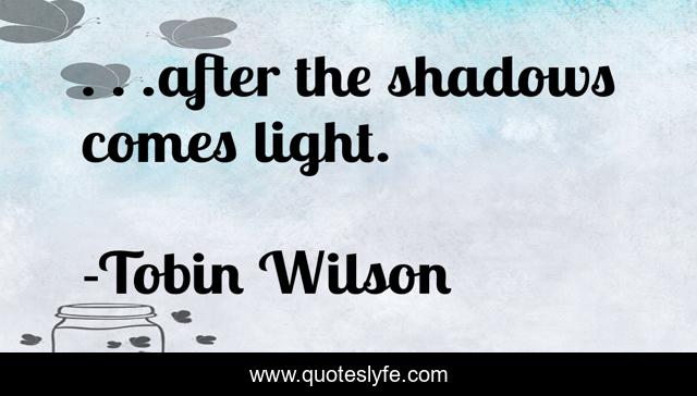 This page presents the quote ". . .after the shadows comes light.". Author of this quote is Tobin Wilson. This quote is about shadows, light,.