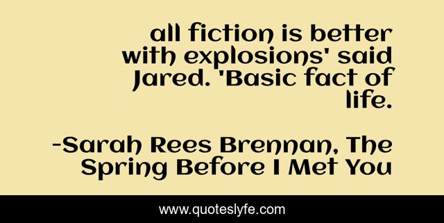 "Sarah Rees Brennan, The Spring Before I Met You Quotes." Quoteslyfe.com, 2025. Fri. 05 Dec. 2025. <https://www.quoteslyfe.com/quote/all-fiction-is-better-with-explosions-said-254600>.