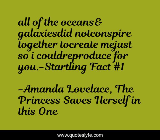 This page presents the quote "all of the oceans& galaxiesdid notconspire together tocreate mejust so i couldreproduce for you.-Startling Fact #1". Author of this quote is Amanda Lovelace, The Princess Saves Herself in this One. .