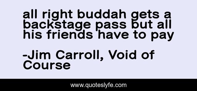This page presents the quote "all right buddah gets a backstage pass but all his friends have to pay". Author of this quote is Jim Carroll, Void of Course. .