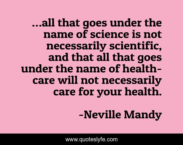 This page presents the quote "…all that goes under the name of science is not necessarily scientific, and that all that goes under the name of health-care will not necessarily care for your health.". Author of this quote is Neville Mandy. This quote is about psychiatry, science, natural-medicine, dental-care, healing,.