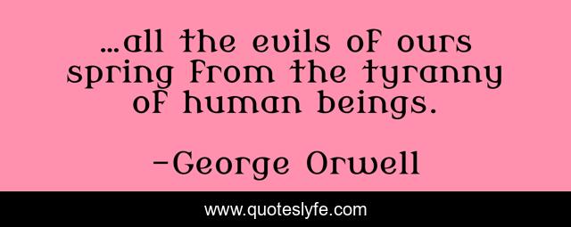 This page presents the quote "…all the evils of ours spring from the tyranny of human beings.". Author of this quote is George Orwell. .